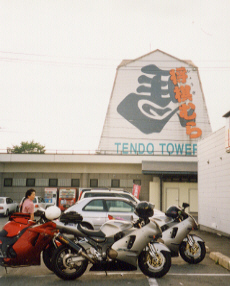 さて、仕事バックれて行ってきましたミーティング、っつーことで、今回は6:30集合のすがちゃん達との待ち合わせ場所「天童タワー」に6:32分着・・・っておい!と、思いきやすがちゃんは出発が遅れたらしくちょうどよかったかも、んで!待つこと数分・・・・太いエキゾーストノートが響いてきたので「来たか?」と思いきや宮城からお越しの「ひろぴい」氏がカスタム12Rで登場!(マジかっこいいっす!)